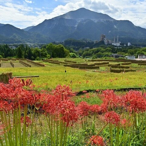 長閑な棚田を武甲山が雄々しく見守る風景です。三菱マテリアル横瀬工場が妙にマッチする景色です。