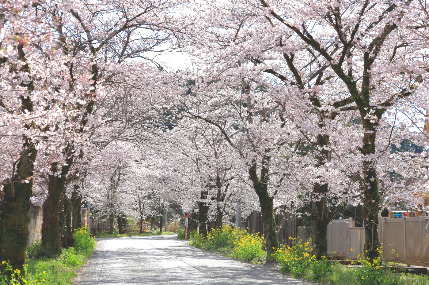 約2km続く桜のトンネルが有名。山頂付近の謙信平では眺望を楽しみながらのお花見もできます。