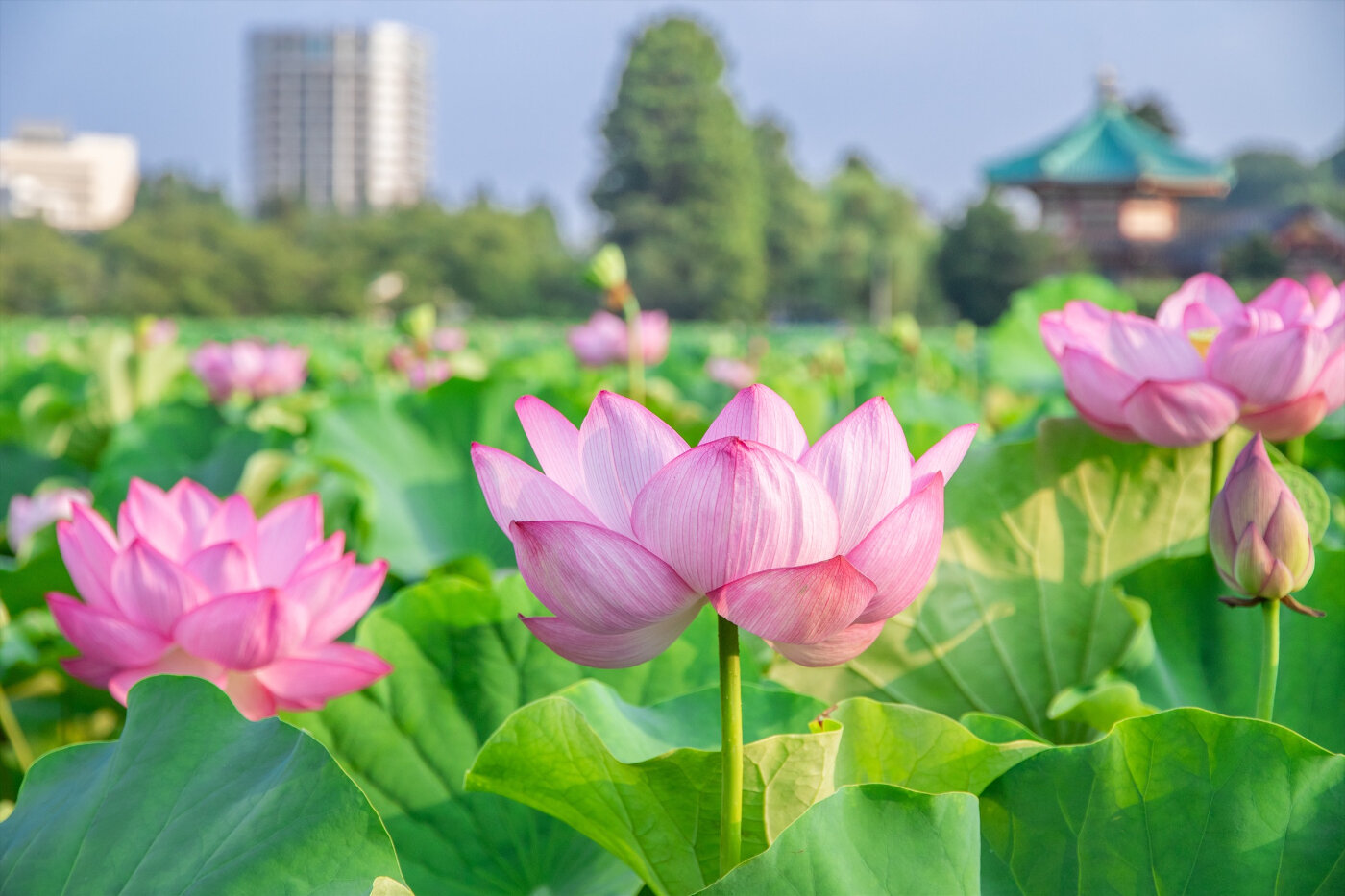 台東区にある54haの都市公園です。公園内に博物館、美術館、動物園などがあります。たくさんの樹木が植えられていて、桜は1,200本あります。不忍池(しのばずのいけ)にはハスが咲きます。
