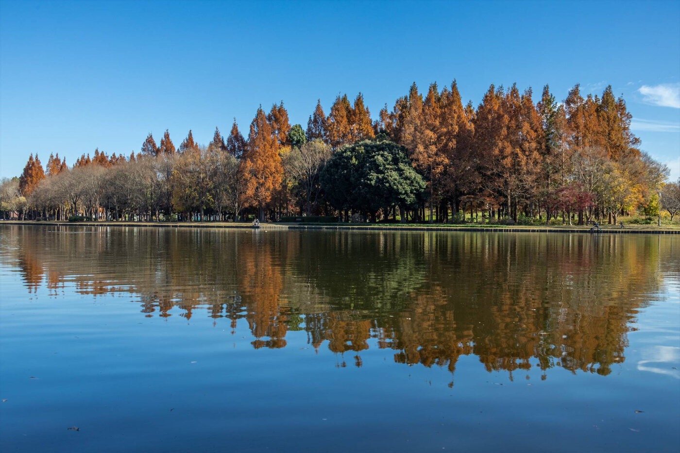 東京都葛飾区と埼玉県三郷市の間にある、用水池小合溜(こあいだめ)に沿って作られた水郷景観を持った都内で唯一の公園。