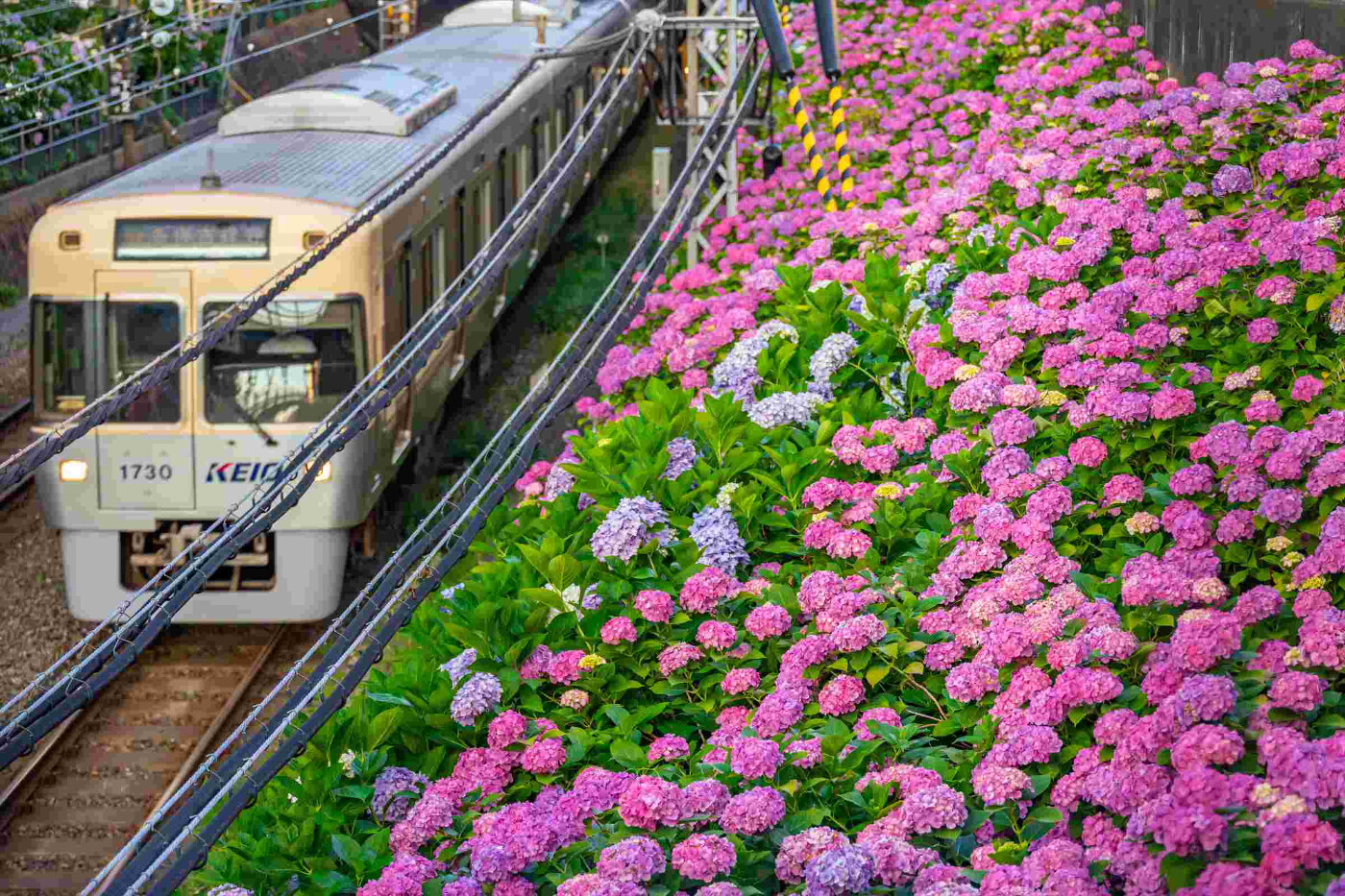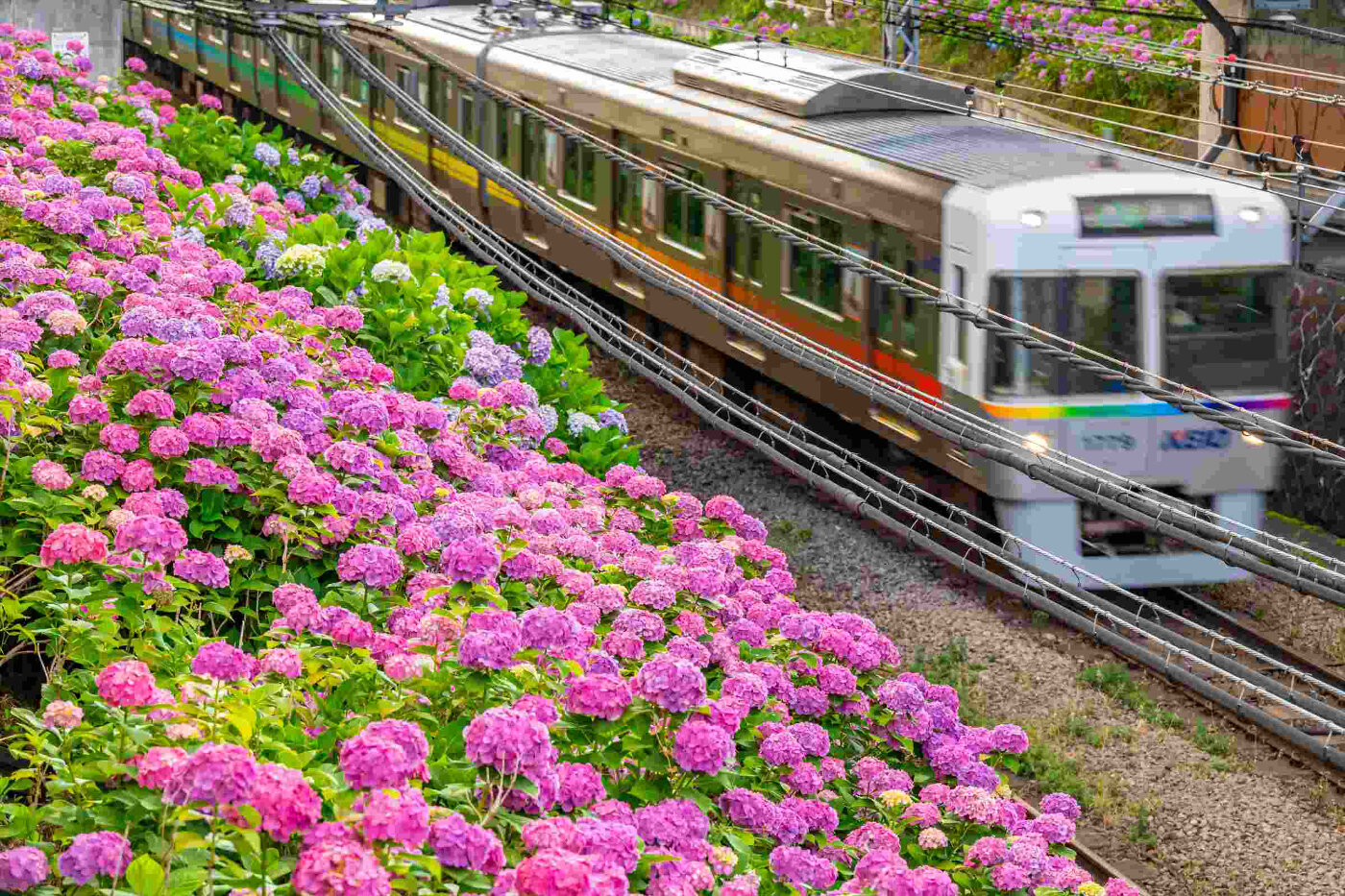 井の頭線沿線 いのかしらせんえんせん 東京都 井の頭線沿線には24,000株超の紫陽花が植えられています。見後の時期には、あじさいをデザインしたヘッドマーク付き列車が運行されます。 撮影者 画像検索はこちら Webサイト https://www.keio.co.jp/news/update/news_release/news_all.html タグ検索 井の頭線沿線 アジサイ 鉄道 東京都 関東 梅雨 月 6月 都道府県 東京都 おすすめポイント 沿線全域にわたって紫陽花が植えられていますが、おすすめスポットは、新代田駅~東松原駅間、浜田山駅~高井戸駅間です。