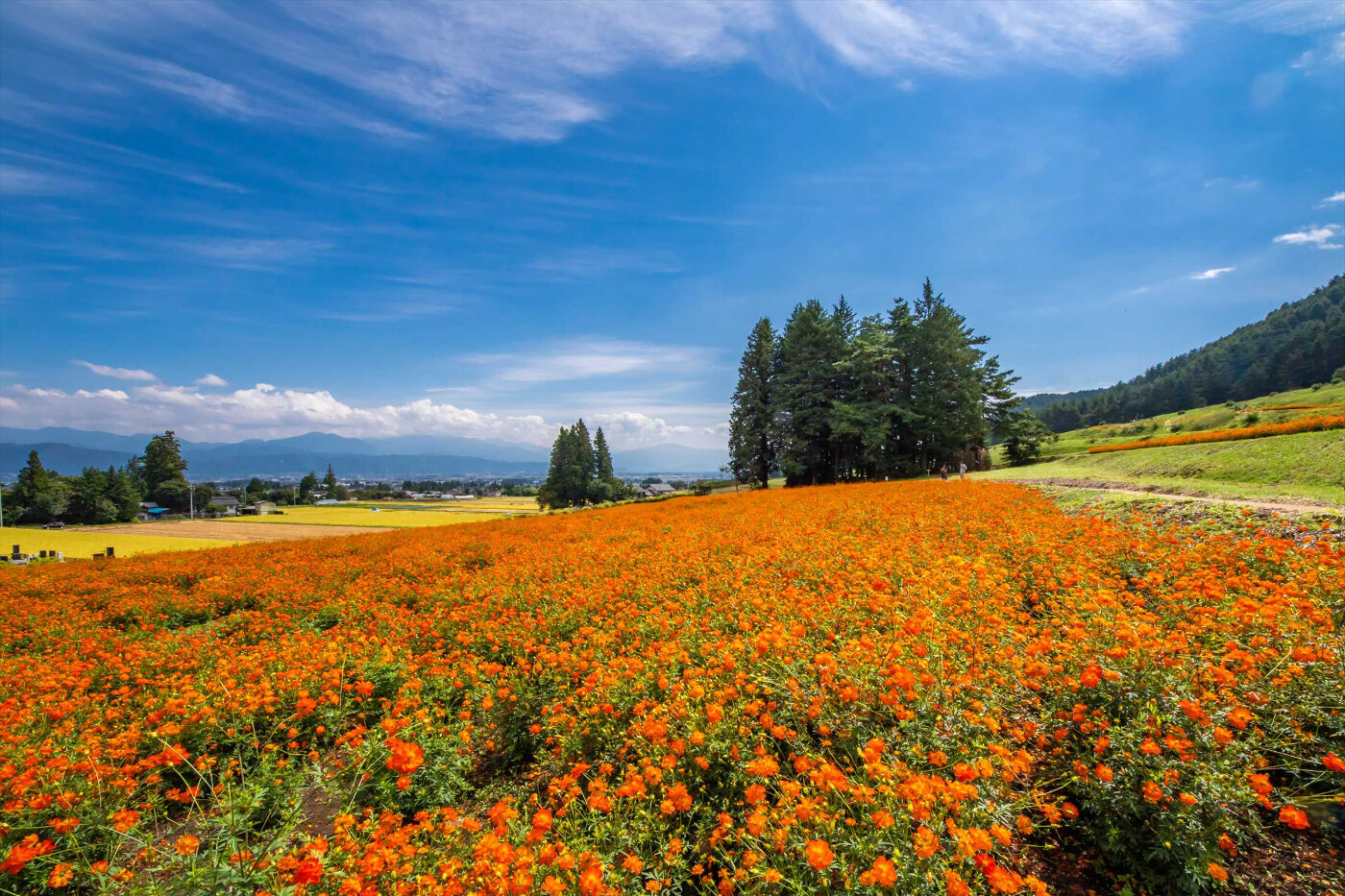 花畑中心の堀金・穂高地区と自然植物中心の大町・松川地区の2地区よりなる広大な国営公園