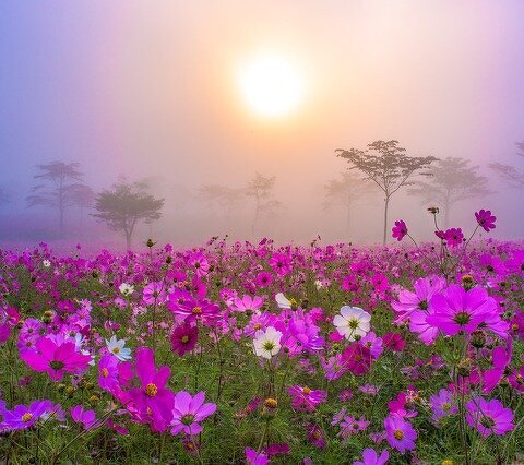 牛の放牧地であった標高 1200m の丘陵一面に、100 万本のコスモスが広がっています。視界を遮るものがな...