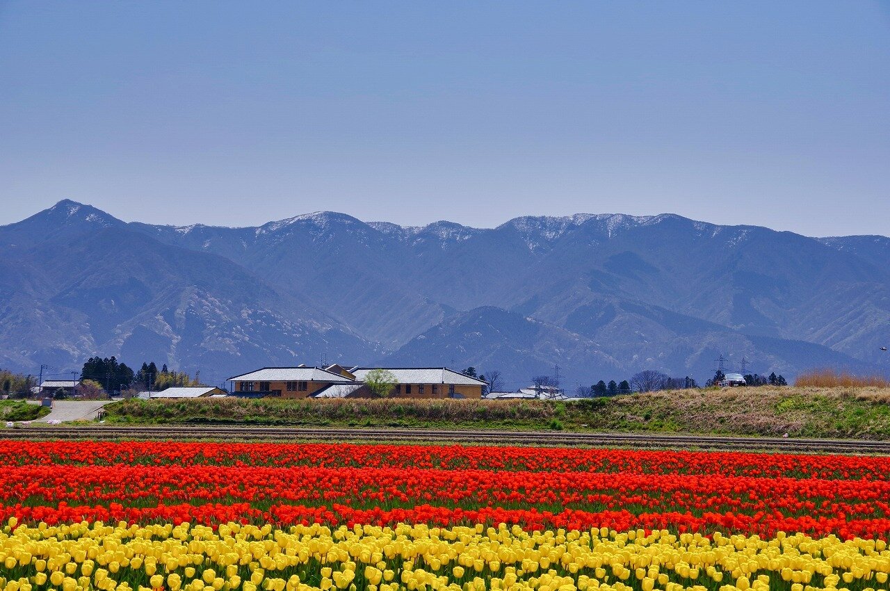 五泉市はチューリップの産地です。3haの畑に150万本のチューリップが咲きます。4月中旬から下旬、チューリップまつりが開催されます。