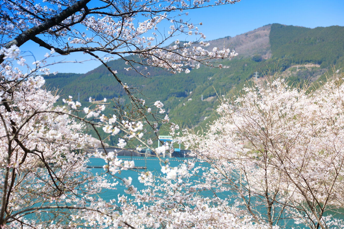 熊本県球磨郡水上村に位置する市房ダムは、熊本県下有数の桜の名所としても有名で、3月下旬頃からはダム湖周囲に植樹された約1万本の桜が咲き誇ります。桜まつり期間中はライトアップもあり夜桜が楽しめるようになっています。