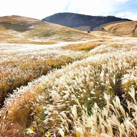 大分県西部、九重連山の北に位置する、標高800mから1,200mにかけてのゆるやかな丘陵地帯です。ススキの...