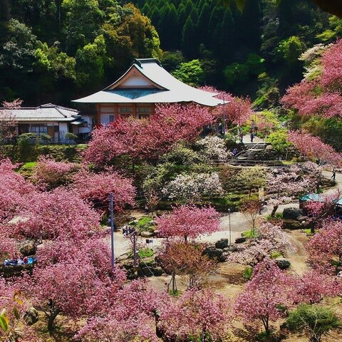 大分市廻栖野(めぐすの)にあるお寺です。6.6haの敷地に、8品種、1.000本の八重桜(ぼたん桜)が植えら...