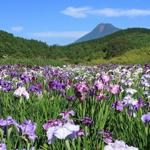 鶴見岳南東部山麓にある湖です。80種、15,000株30万本のハナショウブが咲きます。