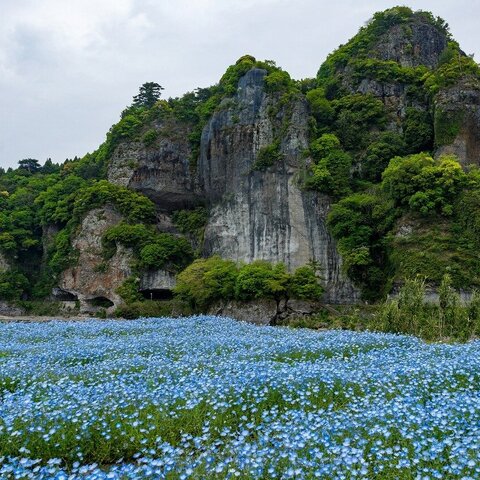 国宝臼杵石仏(磨崖仏)は、現在61体すべての磨崖仏が国宝に指定されています。その公園に咲く花は、芝...