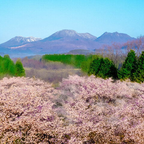 くじゅう連山の麓にある東京ドーム約2個分もの広大な敷地に、約2600本の桜が咲き乱れます。大漁桜・コ...
