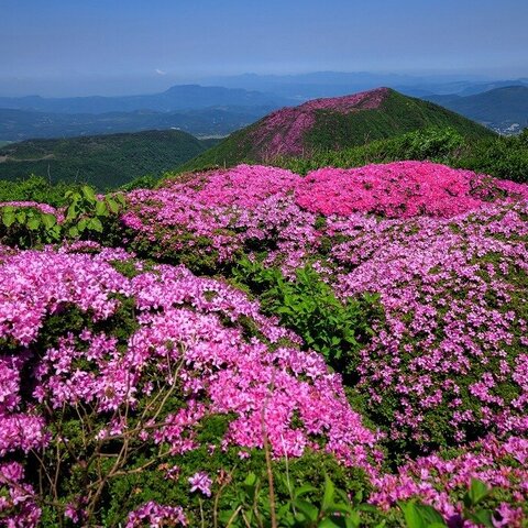 九州本土最高峰の久住山に連なる峰々。6月のミヤマキリシマや紅葉の絶景スポット。