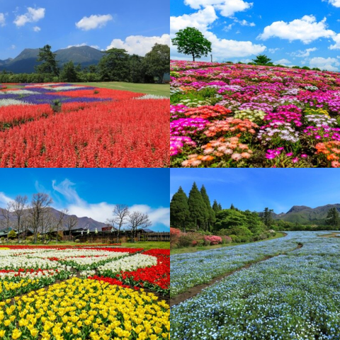 目前にくじゅう連山の大自然を望める絶景の花公園です。