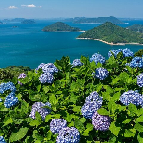 紫陽花 例年6月中旬~7月中旬頃 瀬戸内海に突き出した荘内半島にある標高352mの山です。1,000本の桜が...