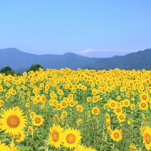 川沿いに広がる広大なひまわり畑は、早咲きのひまわり、遅咲きのひまわりが咲き、初夏と秋の2度楽しめま...