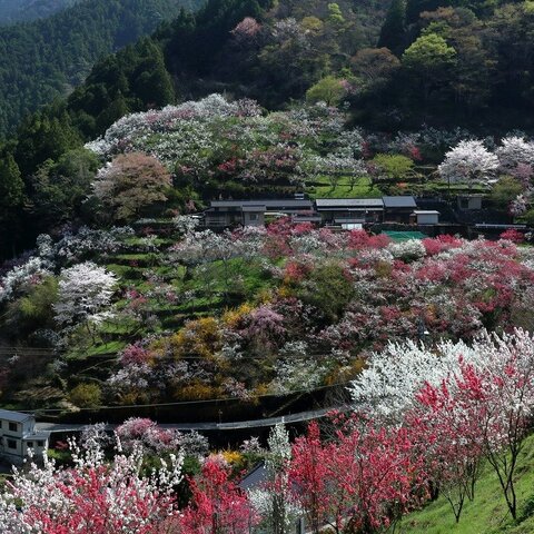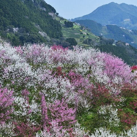 仁淀川町(によどがわちょう)、仁淀川の左岸山斜面にある公園です。花桃とソメイヨシノが咲きます。山...