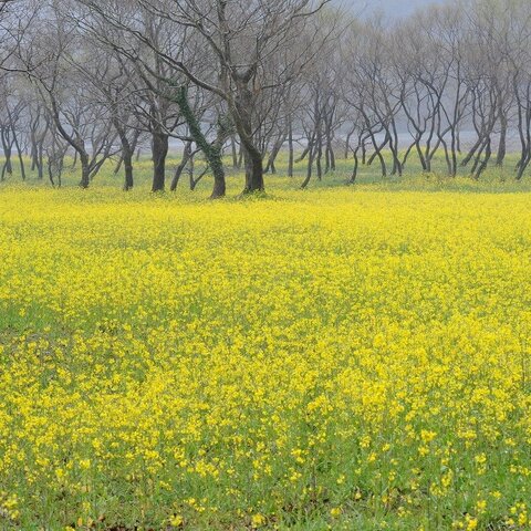 日本最後の清流四万十川沿いにつづく約2kmのヤナギの自然林。その足元を約1000万本の菜の花がまっ黄色に...