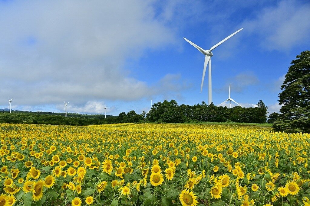 『風の高原』と言われるこの場所で、8月から9月にかけてひまわりが一面に咲き誇ります