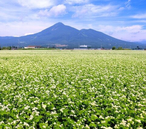 町中のあちらこちらでソバの花が咲きます。ソバ畑からは磐梯山ものぞめます。