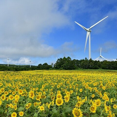 『風の高原』と言われるこの場所で、8月から9月にかけてひまわりが一面に咲き誇ります