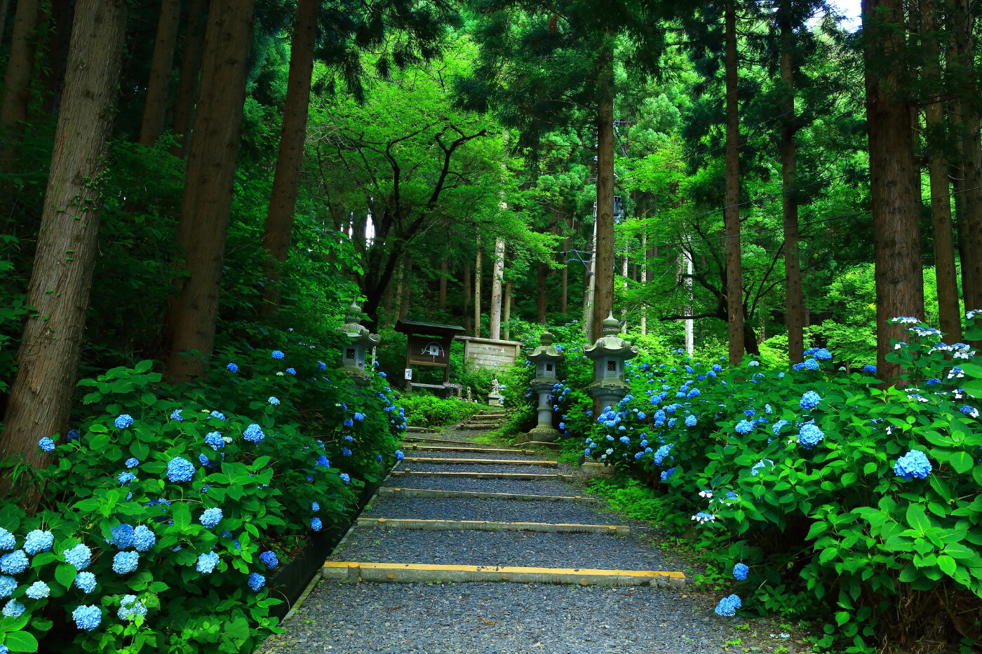 東北最古刹の八葉山天台寺。4,000株といわれるあじさいの名所。2023年には20回目のあじさい祭りを開催。