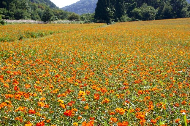 | おすすめポイント | 長閑な景色の中で一面のキバナコスモスを楽しめます。 |