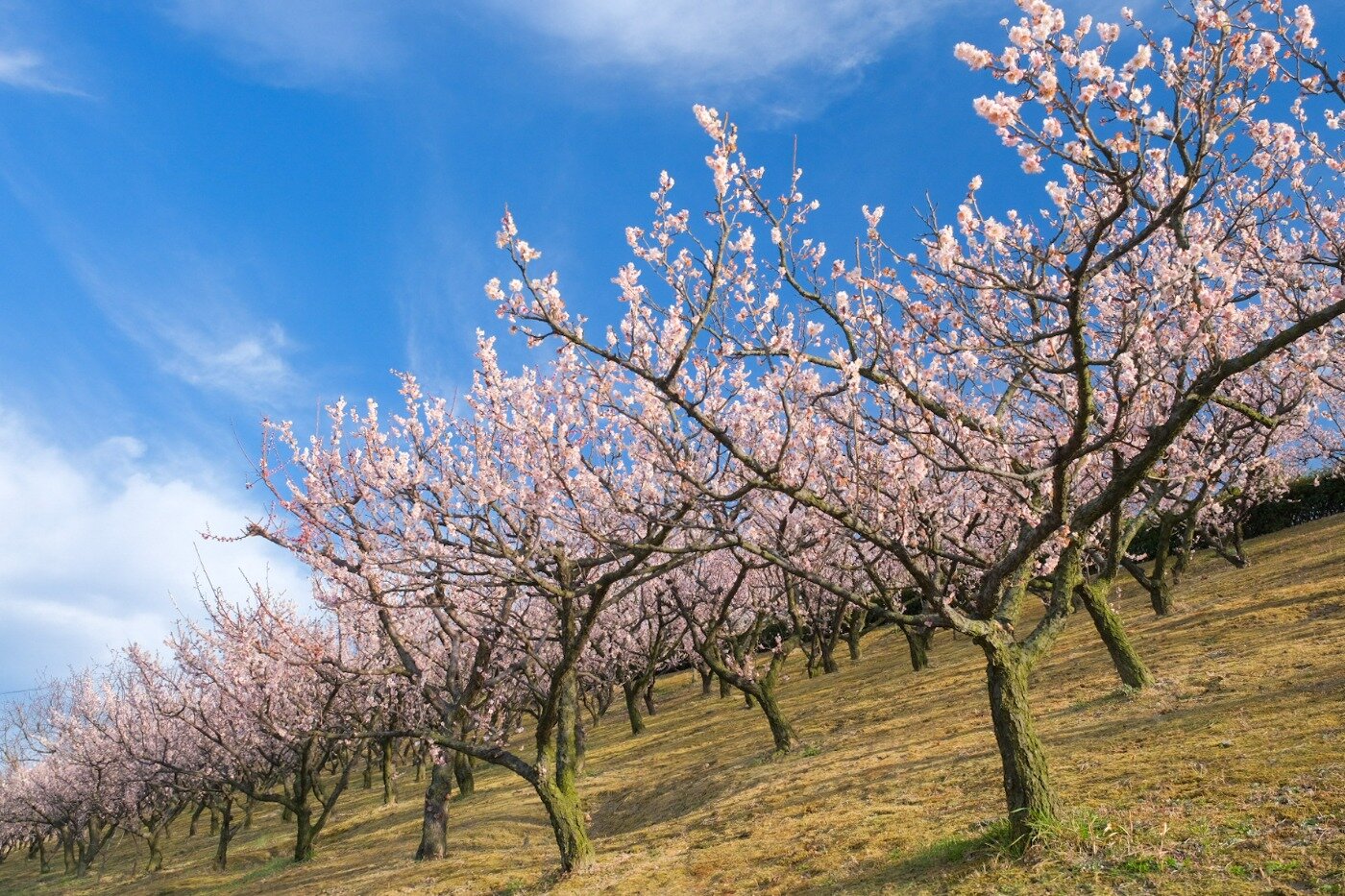 佐布里池周辺に約6000本の梅が植えられている、愛知県一の規模の梅林です。梅林の梅は9割が佐布里梅と呼ばれる梅で、一本の梅の木に比較的多くの花が付きます。形は、咲き始めの花びらが少しとがっており星の形に見えます。