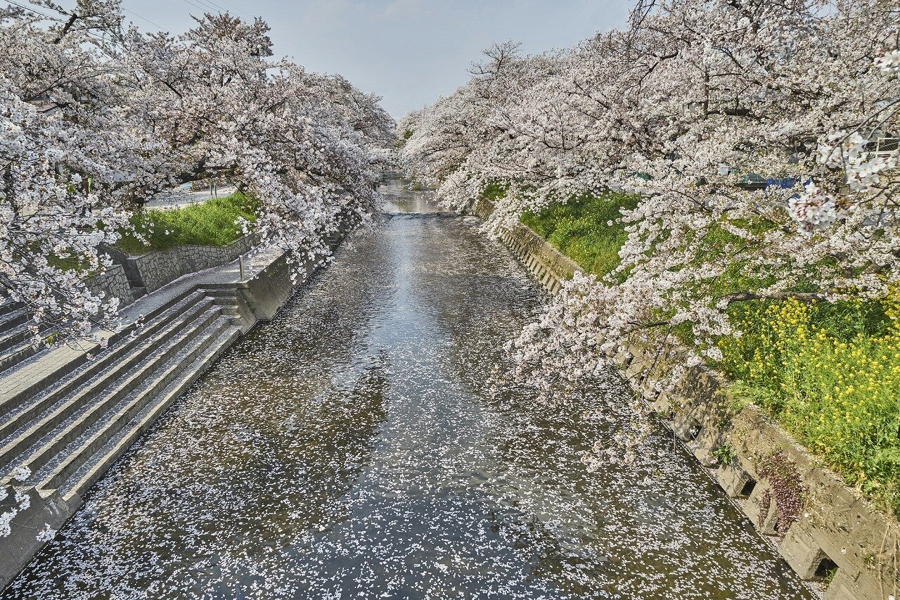 愛知県西部を流れる川です。入鹿池を過ぎると、河岸に延々と数千本のソメイヨシノが植えられています。特に、岩倉市や大口町の桜並木は桜の名所としても有名で、ライトアップやイベントなどが行われています。両岸から川面を覆うように桜の花が咲き誇るので花筏も見られます。橋がたくさん掛かっていて撮影スポットが盛りだくさんです。