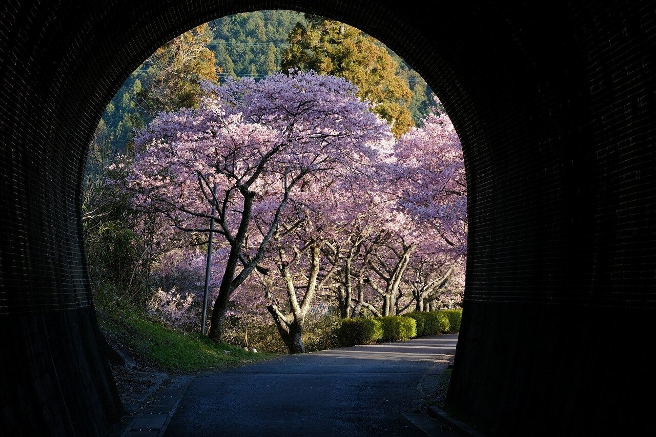 廃線鉄道跡地に、平成4年に静岡県河津町商工会から贈られた苗木を植えたのが始まりです。30本の河津桜の並木です。鉄道トンネルの中から見る景色が有名です。