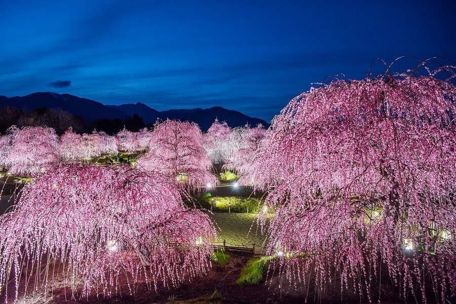 鈴鹿の森庭園 すずかのもりていえん 三重県 日本全国から集められた約200本もの枝垂れ梅の名木たちが、鈴鹿山脈を背景に見事に咲き乱れます。夜間のライトアップに浮かぶ幻想的な枝垂れ梅も必見です。 撮影者 画像検索はこちら Webサイト https://www.akatsuka.gr.jp/group/suzuka/ タグ検索 鈴鹿の森庭園 ウメ 山 三重県 東海 シダレウメ 月 2月 、 3月 都道府県 三重県 おすすめポイント 日が沈み終わるマジックアワーの時間帯なら、山並みとライトアップされた枝垂れ梅の両方が楽しめます。