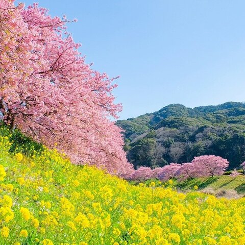 伊豆半島最南端、南伊豆町を流れる青野川沿い2kmの両岸に、800本の河津桜が植えられています。2月に菜の...