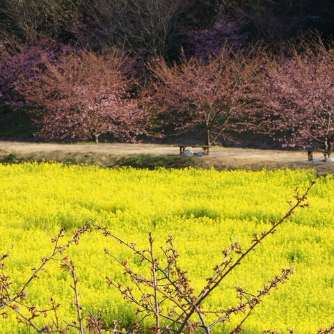 浜松市を流れる花川沿い1km沿いに、約400本の河津桜が地域住民の方々により植えられ作られた名所。本場...