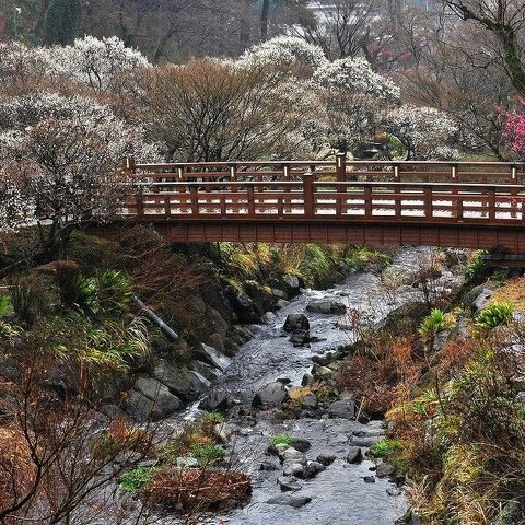 明治19年に開園した「日本一早咲きの梅」で知られる熱海梅園。60品種469本の梅が咲き、樹齢百年を越える...