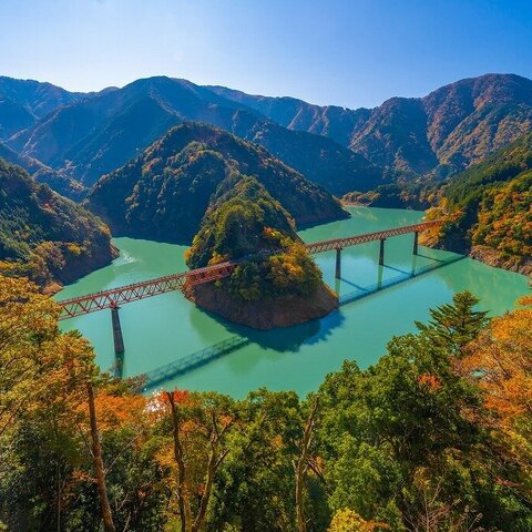 千頭から井川を結ぶトロッコ列車、南アルプスあぷとライン(大井川鐵道井川線)の駅。湖に浮かび神秘的...