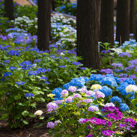 日本最長の歩行者専用吊り橋として有名な「三島スカイウォーク」を渡った先には、7,000m2のあじさい園...