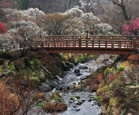 明治19年に開園した「日本一早咲きの梅」で知られる熱海梅園。60品種469本の梅が咲き、樹齢百年を越える...