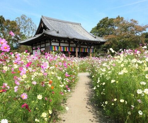 ピンクや黄色のコスモスにほっこり癒されるコスモス寺です。また、ガラスボールに入れた紫陽花でも有名...