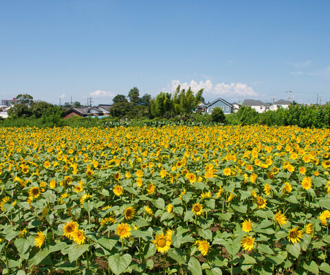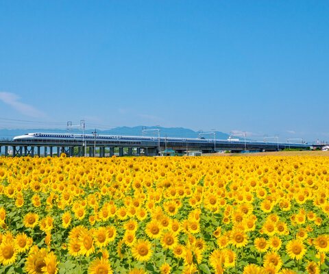 休耕田を利用したひまわり畑。平成2年より始まり、毎年場所も作付面積も変わります。東海道新幹線(特...