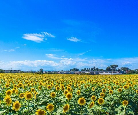2万4000haという都内最大級の広大な農地に約10万本ものひまわりが咲き乱れます。