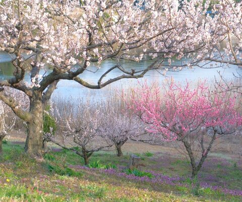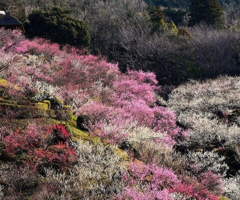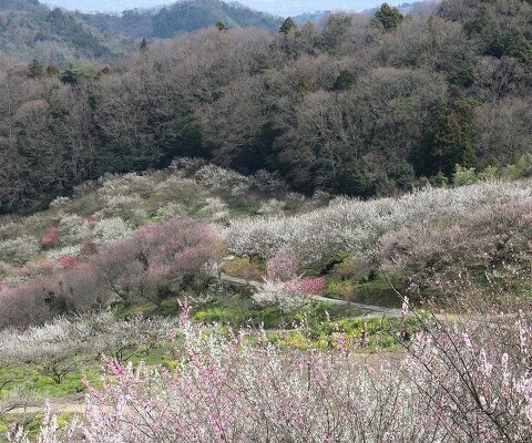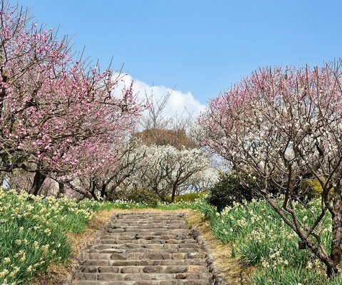 小高い里山の山中で、斜面一面に1万6千本を超える梅が咲き誇ります。展望台から梅園を一望でき、見晴...