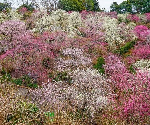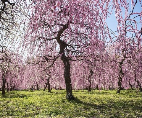 5000?の園内で350本のしだれ梅が楽しめます。独自の「昇竜仕立て」という仕立て方で、竜が雲をつかみ、...