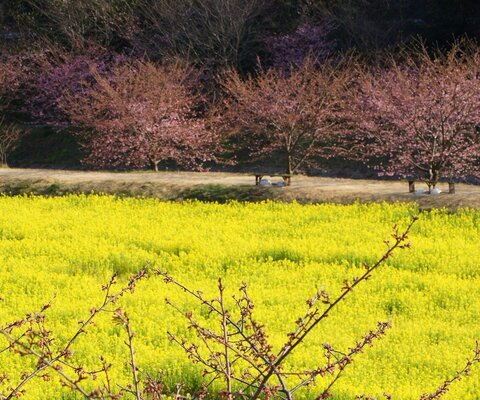 三浦海岸駅から小松ヶ池公園までの京急線沿線沿い1kmに約1000本の河津桜が植栽されています。菜の花との...