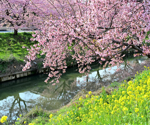伊豆半島最南端、南伊豆町を流れる青野川沿い2kmの両岸に、800本の河津桜が植えられています。2月に菜の...