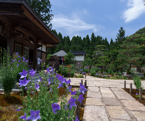 15種45,000株100万本の桔梗が咲くききょう庭園を持つ、曹洞宗鹿苑山香勝寺。日本三大ききょう寺の一つ(...