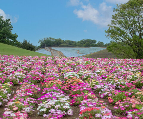 平成26年6月に最終エリアがオープンし全園開園した国営公園。1年を通して色々な花を見ることができます。