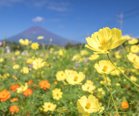 富士山の麓、山中湖の近くにある公園。富士山と花畑の絶景が楽しめるスポット。四季折々の花畑が広がり...