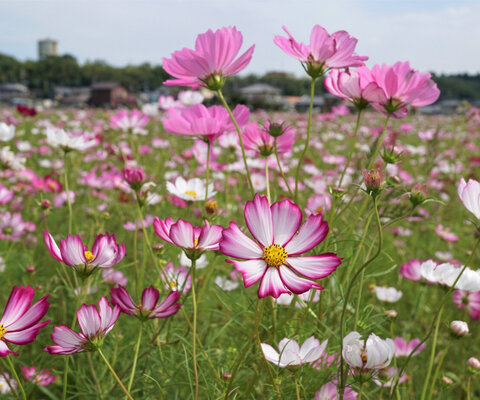 北利根川沿いの6haの畑に約1,000万本のコスモスが咲く