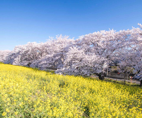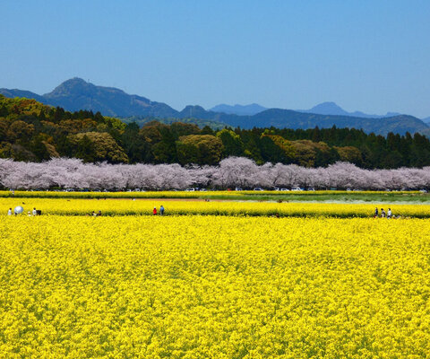 古墳時代から続く歴史に思いを馳せながら一面の花風景に浸れます。春は2,000本の桜と30万本の菜の花、夏...