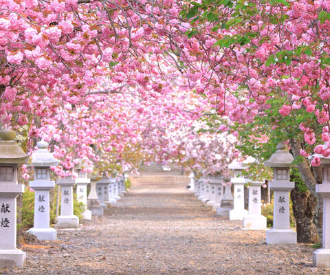 奈良県の県花である奈良八重桜が公園の隋所で見ることができます。桜の下で鹿たちがお花見する光景も奈...