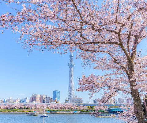 日本さくら名所100選に選出された名所。吾妻橋から桜橋あたりまで約1kmの343本の桜並木。毎年、墨堤さく...