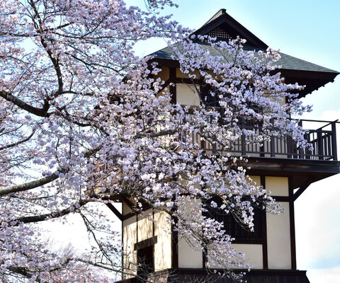 約700本の桜が咲き、例年4月上旬からさくらまつりが行われライトアップも実施されます。